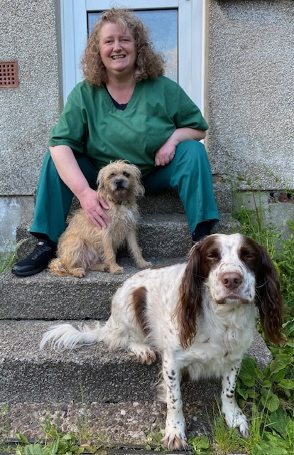 It was then that I realised that my real passion was in small animal medicine and surgery general practitioner and in 1998 I moved back to my mother’s home country where I purchased and developed Condorrat Veterinary Surgery. Most of my time is spent in practice but when I do have some free time it’s spent either catching up on much needed sleep, snacking on Nutella sandwiches or with my 2 son’s Alex and Duncan and with my own pets Georgie (Border Terrier), Strider (Springer) (shown in the image), and Phoebe (Ragdoll cross).