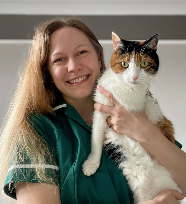 I qualified as a Registered Veterinary Nurse in June 2023 with a BSc Honours Degree from Edinburgh Napier University. I started at Condorrat vets in January of 2022 and completed the majority of my placements as a Student Veterinary Nurse within the practice. I was grateful to be offered a job as a student at the end of 2022 and to stay on once I graduated university. I have always wanted to have a career working with and helping animals, so veterinary nursing was something I had my heart set on throughout school.
